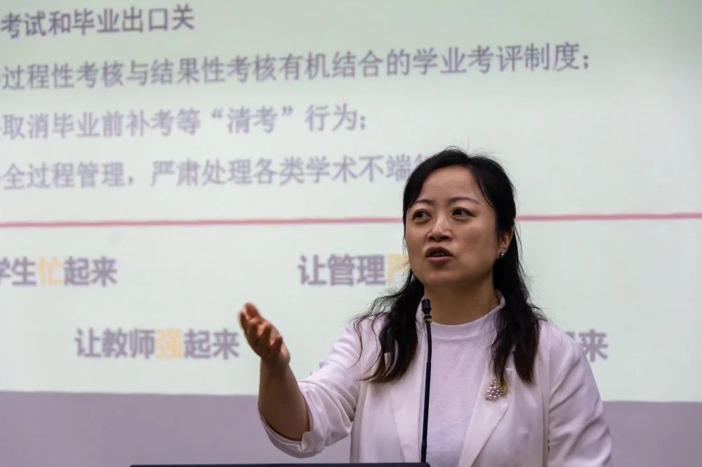 而后,沈岚从学生规模、师资规模和教研室架构等三个方面介绍了做爱自拍 的整体架构,做爱自拍 拥有8个教研室,专业教师共67名,其中教授18名,副教授27名,具有浑厚的师资队伍。在同类院校中,具有明显的师资优势和平台优势,希望同学们坚定信心,取好、用好学院的师资资源。