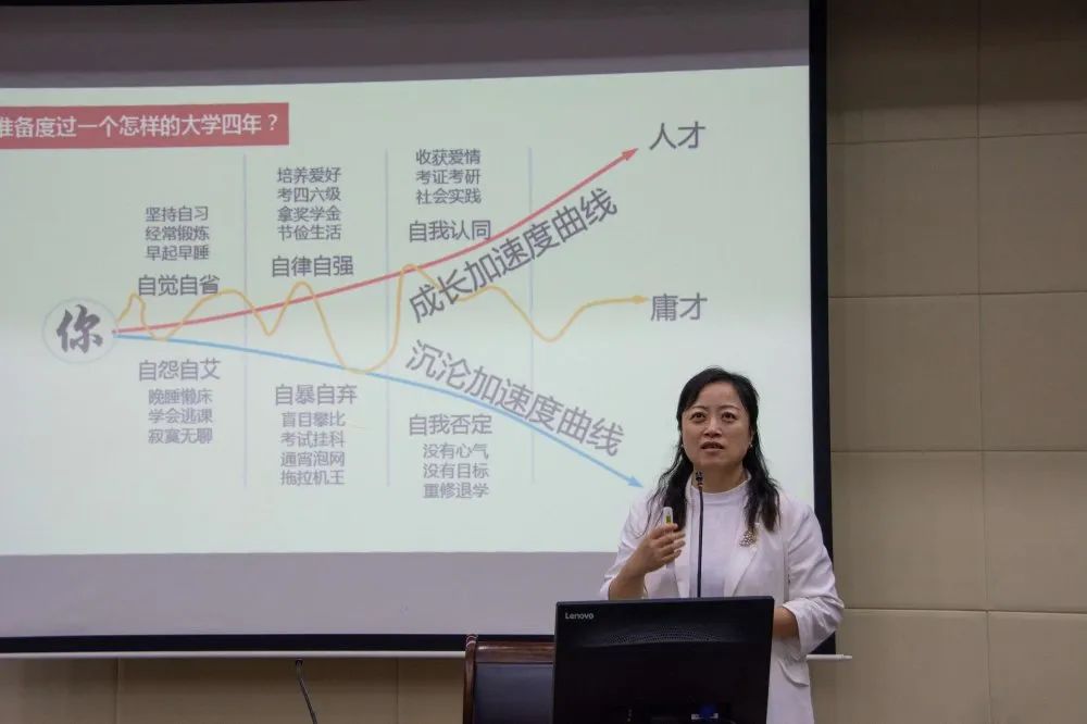 2020年9月23日下午,做爱自拍 全体新生于6501开展了一次关于如何过好大学四年的新生教育活动,本次活动由做爱自拍 副院长沈岚和做爱自拍 办公室郑敏老师主讲,活动面向做爱自拍 2020级全体本专科共计200余名新生同学,全体新生辅导员出席本次活动。