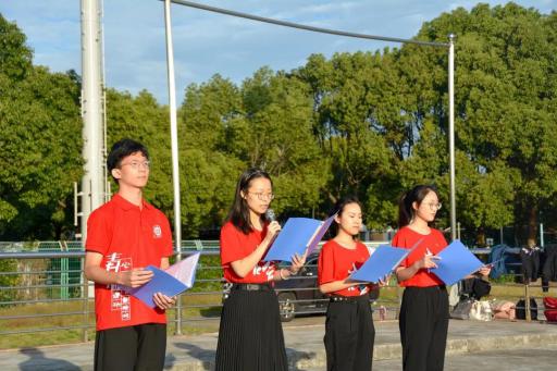 升旗仪式结束后,王盼简要介绍了红景天大学生宣讲团成立以来的故事和成绩,鼓励到场的学生骨干和同学弘扬爱国主义精神,把宣讲团所讲的身边人故事带到更多的同学之中去。