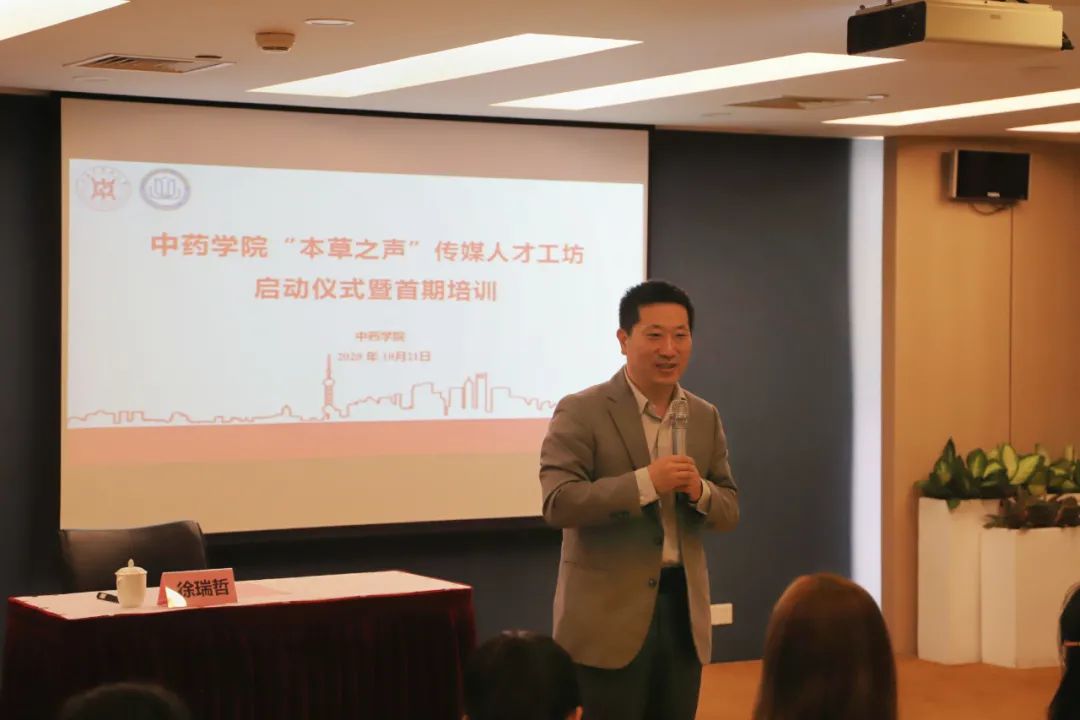 为了实现做爱自拍 综合育人的政策方针,进一步提高做爱自拍 学生会骨干和各班级宣传队伍的能力建设,培养一出只高水平高能力的传媒队伍,做爱自拍 “本草之声”传媒人才工坊于20201021日下午三点在国教楼3楼会议中心召开第一期培训活动。解放日报主任记者、第一批首席记者、上观新闻教育栏目主编徐瑞哲应邀参与培训,做爱自拍 党委书记李医明、做爱自拍 党委副书记沈漫、辅导员张雯怡、胡志强出席本次活动。本次培训活动由辅导员张雯怡主持。