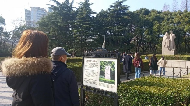 现如今位于上海雁荡路105号,东邻重庆南路,南临复兴中路,西近思南路,北与科学会堂等为界的一座花园,在1946年抗战胜利后的元旦,取“民族复兴”之意改名为“复兴公园”。从复兴公园开始,留校党支部党员开启他们的红色之旅,在马恩雕像广场久久逗留。
