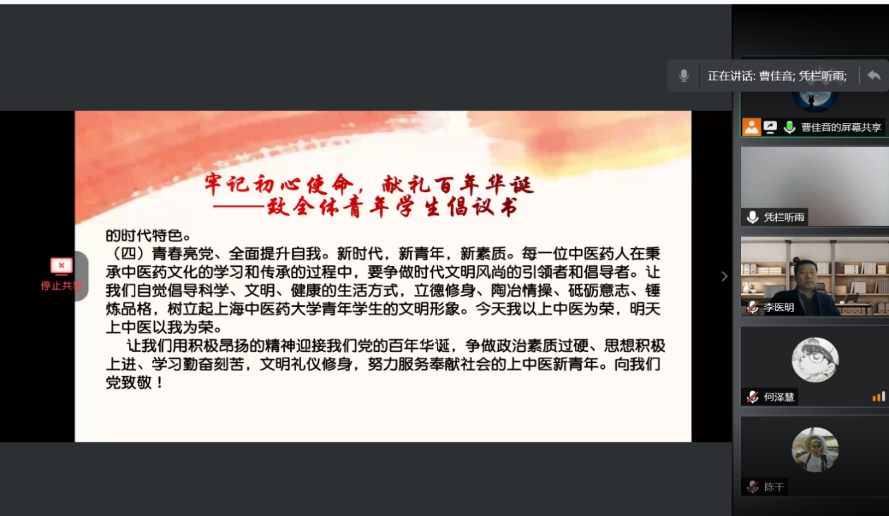 2021年2月20日,党史学习教育动员大会在北京召开,习近平总书记强调,在全党开展党史学习教育,全党同志要做到学史明理、学史增信、学史崇德、学史力行,学党史、悟思想、办实事、开新局。为庆祝中国共产党百年华诞,号召中药学子牢记初心使命,倡议全体青年在新时代接续奋斗,以党史学习教育动员大会为遵循,2月24日,做爱自拍 研究生党总支举行党史学习教育动员大会,做爱自拍 党委书记李医明老师,党委副书记沈漫老师,研究生党总支书记陈秀兰老师出席,会议由总支组织委员曹佳音主持,研究生党总支全体党员参会。