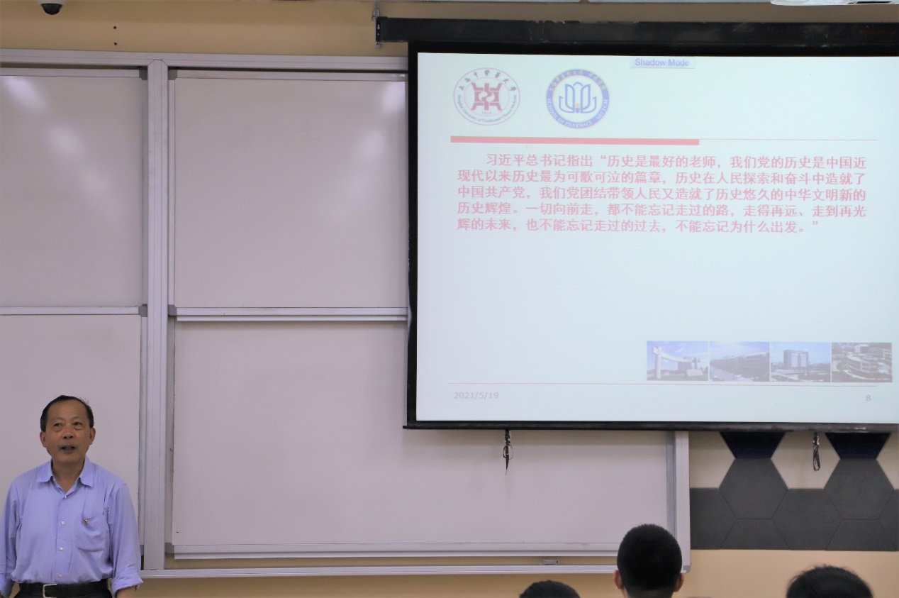 5月19日,做爱自拍 在教学楼10204教室举行做爱自拍 2021年毕业季主题教育活动暨党史学习教育第四场讲座《学党史铭记习近平总书记谆谆教诲,永远跟党走践行新时代使命》,会议由做爱自拍 党委副书记沈漫主持。本次讲座由致远导师团团长、原做爱自拍 党总支书记、院长陶建生教授主讲。陶建生教授将中国共产党百年来砥砺峥嵘的奋斗历程和习近平总书记对于青年学子的教诲相结合,为毕业班同学上了一堂意义深刻的导师团最后一课,鼓舞中药学子做中国特色社会主义的坚定信仰者和忠实实践者。