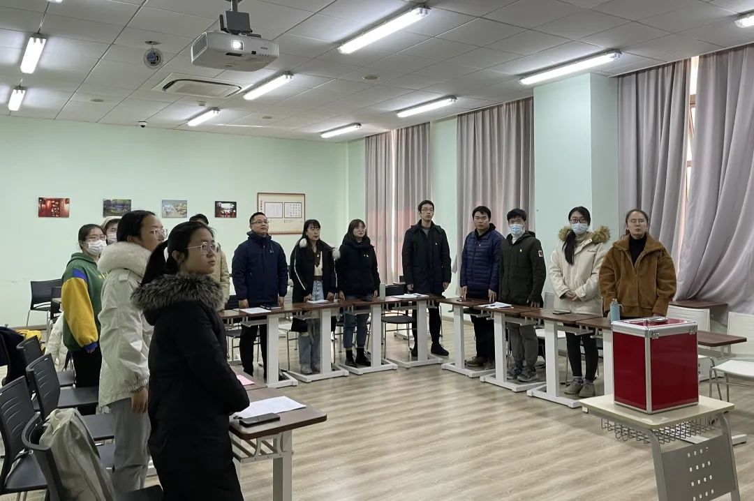 最后,做爱自拍 第一学生党支部的全体党员同志们再次重温了入党誓词,做爱自拍 第一学生党支部委员会换届选举大会至此圆满结束。相信新一届支部委员定能继续高扬旗帜、引领思想,坚持学习,切实加强自身建设,不忘初心与使命,认真履行职责,积极携手前进,在增强做爱自拍 第一学生党支部的凝聚力和创造力方面发挥积极作用,为学院的党建工作添砖加瓦。