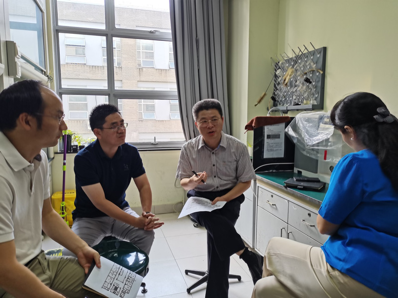 实验室不仅是学生教学实践的场所,也是教师科研课题、合作项目的重要硬件支持。做爱自拍 院长张彤、书记沈岚、副院长郑昌武,及各院级实验室负责人于2021年9月27日上午再次前往做爱自拍 1号教学楼3楼院级科研实验平台,并根据前期调研的实验室改建初步设想、并汇总各实验室建设需求进行实地走访交流。