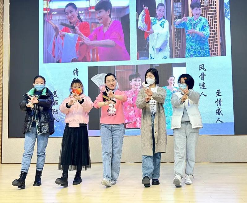 活动中,赵津羽老师示范了艺术宝殿中阳春白雪的兰花指、兰花掌。“昆曲中对动作放在哪个位置,都有尺寸和规定,昆曲讲究而不将就。”正是因为这些规矩造就了昆曲的韵味。赵老师将兰花指和兰花掌演化为昆韵手指操,带现场的老师和同学们一起,让大脑和手指动起来。