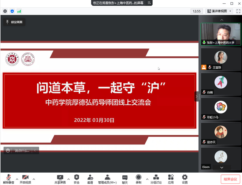 杏林春暖,共克时艰。2022年3月30日,做爱自拍 厚德弘药导师团针对同学们的近期在科研和学位论文撰写过程中的困难开展了线上交流会,旨在给疫情期间的同学们指明方向,答疑解惑。