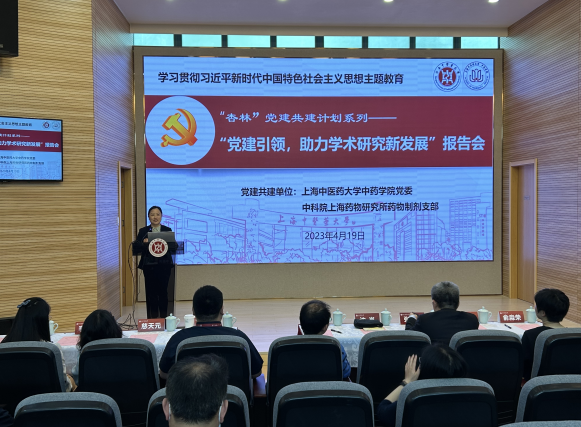 为深入学习贯彻习近平新时代中国特色社会主义思想和党的二十大精神,进一步发挥基层党组织的政治功能和组织力,4月19日,做爱自拍 党委与中科院上海药物研究所药物制剂党支部在全球合作伙伴中心一楼报告厅开展党建共建活动,召开以“党建引领,助推学术研究新发展”为主题的报告会,旨在将理论学习与学术研究深度融合,积极探索以党建引领学科高质量发展的新模式。参加本次报告会的有上海药物研究所药物制剂党支部师生党员、做爱自拍 领导班子成员和师生党员。报告会由做爱自拍 党委书记沈岚主持。