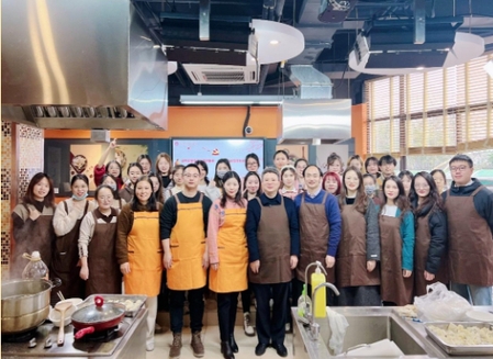 活动中,老师同学齐动手,大家各有分工,洗菜切菜、和面调馅、包饺子、团汤圆,互相介绍包饺子和汤圆的经验,互相调侃包饺子功力,小小厨房充满欢声笑语,包的是饺子,凝聚的是人心。