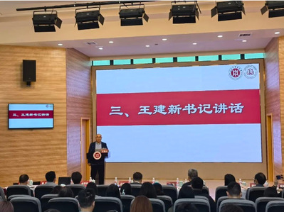 复旦大学药学院党委书记王建新进行了讲话。他指出两院交流由来已久,希望通过双方共建,利用已有的学科和综合优势,不断推动双方向更高水平、更深层次、更高质量发展。