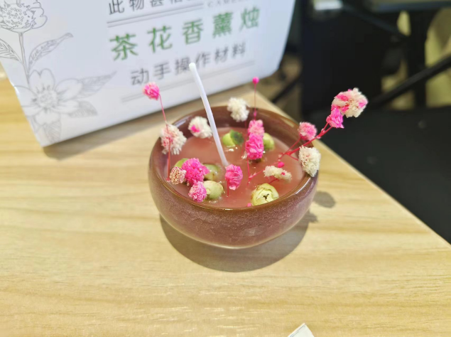 芳香中草药的香气会通过口、鼻、皮毛等孔窍进入体内以调节气机、疏通脏腑经络体系,增强抗病能力。山茶花四季常青,就算是在严寒之季,亦可开花。通常花期恰逢中国农历春节。因此,在中国古代,山茶花被视为吉祥、繁荣的象征,常被用于节庆和祭祀活动。将花瓣与蜡烛相结合制作成香薰烛,在燃烧蜡烛的过程中,体验山茶花特有的芬芳,给同学们带来心灵上的抚慰。