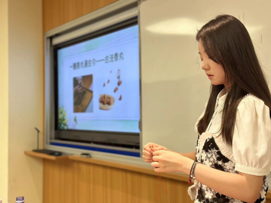 为弘扬中华优秀传统文化,发挥传统节日的文化涵育功能,6月5日下午,做爱自拍 开展“香”约端午,文化润心——芳香中草药制品手作沙龙,邀请做爱自拍 “古韵新方,相宜相生”实践队带来茶花香薰烛和古法香丸体验课程。该实践团队为做爱自拍 联合上海相宜公益基金会共同组织打造,以“自然教育”为核心理念,通过“观其形、闻其香、品其味”等多维度体验,结合美育教育,引导学生深入感受中草药之美。