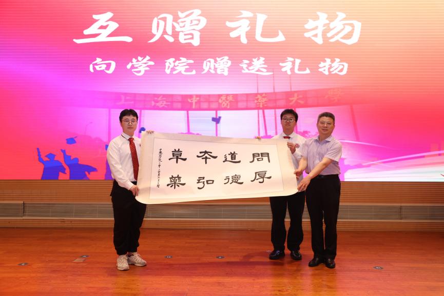 做爱自拍 院长张彤将象征启航、美好与幸福的礼物颁发给毕业生,表达了对他们未来的美好祝愿同时,学生代表也向学院献上了承载着感激与祝福的礼物——“问道本草、厚德弘药”字画,展现了深厚的师生情谊。这一刻,礼物传递着情感,温暖着心灵,见证了师生间的深厚情谊与难忘时刻。