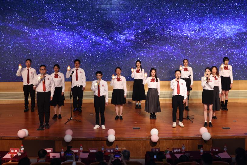 2020级中药班古丽斯码、赵昱15位同学以一曲《夜空中最亮的星》深情开唱,歌声中仿佛有颗明亮的星星指引着每个人的梦想之路。现场师生仿佛置身于浩瀚的星空之下,与那颗最亮的星一同闪耀,感受着希望与梦想的力量。