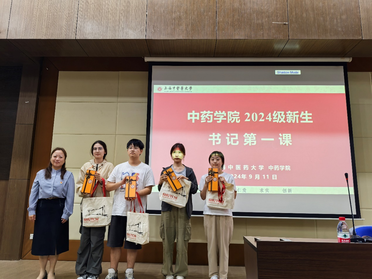 讲座结束后,沈岚书记代表学院为新生代表送上装有戥秤、灵芝宝宝吉祥物手机支架等物品的帆布袋组成的入学礼物,戥秤不仅是衡量药材的标准,更是象征中药人内心的准则。