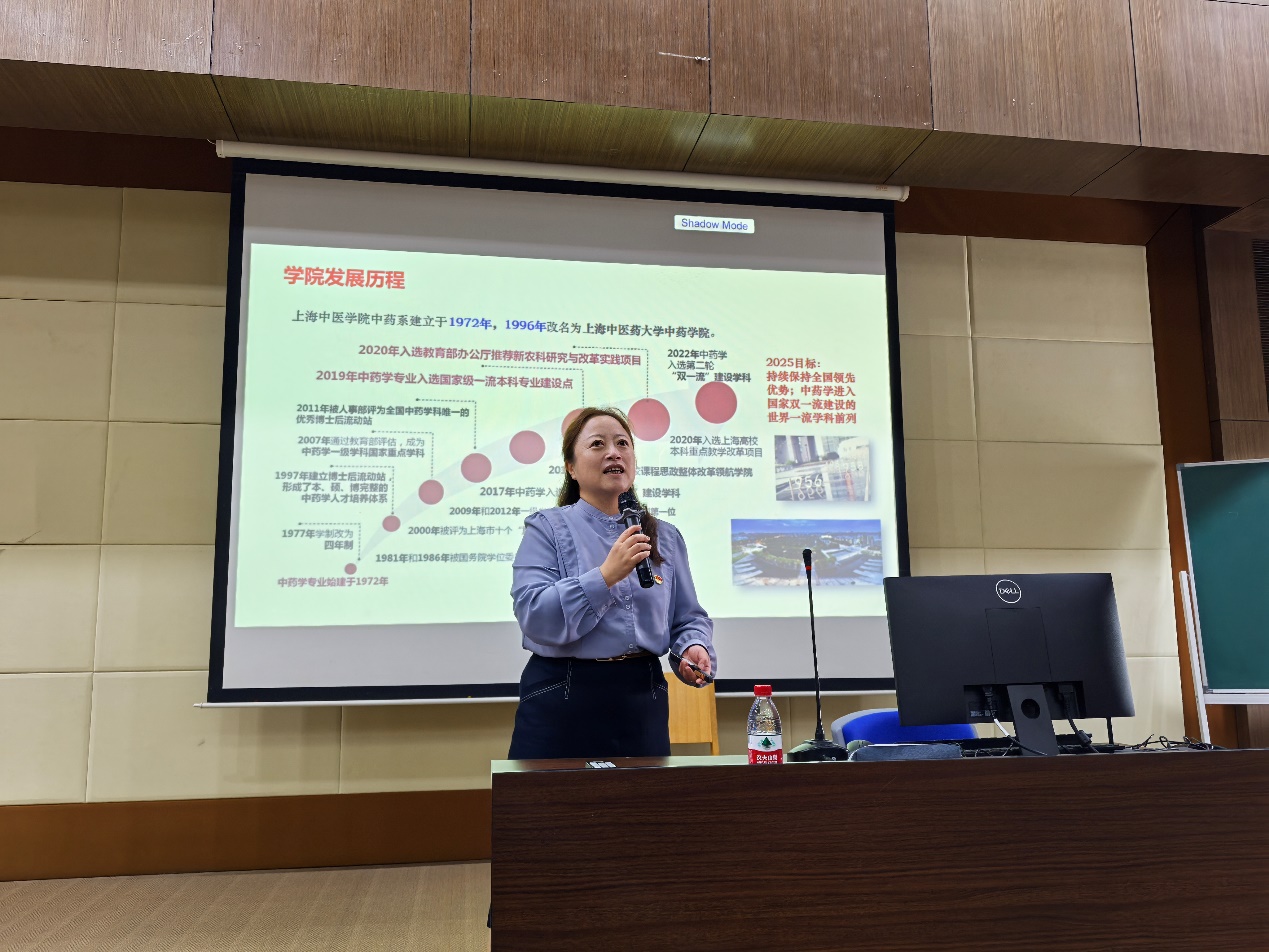 陆婧副书记欢迎全体新生加入做爱自拍 大家庭。做爱自拍 党委书记、博士生导师沈岚教授全面系统地从做爱自拍 的发展历程、坚定专业自信、坚守科研学术道路,融入新时代以及不忘初心跟党走四个方面为全体新生开启了了解做爱自拍 、了解中药学、开启中药学人生奋斗历程的第一堂富有教育意义的课程。