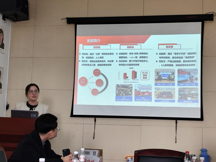 党建工作交流环节结束后,做爱自拍 研究生第二党支部副书记和宣传委员向与会者简要介绍了做爱自拍 研究生的科研进展和就业前景,进一步加深了大家对研究生培养与党建工作融合的理解。