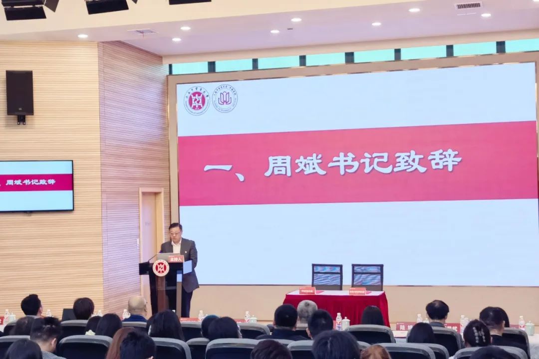 会上,校党委副书记周斌发表致辞,对双方本次活动表示祝贺。他指出新质生产力的崛起,为中医药事业带来了新的发展机遇,我们要把握时代脉搏,深入研究新质生产力的内涵与特点,将中医药的智慧与现代科技相结合,推动中医药高质量创新发展。并提出三点建议: