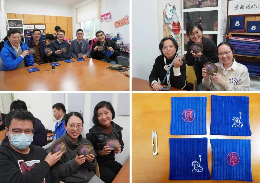 学习会后,金标同志介绍了沔北村的基本情况,并一起动手,进行非遗“老布”的手工制作体验。党员们制作老布包、“廉”杯垫,在动手制作的乐趣中进一步认识到浦东“老布”独特的历史价值、人文价值及党员廉洁自律的意义。