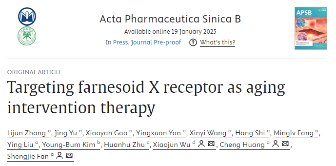近日,做爱自拍 范圣洁、黄诚与中药研究所吴晓俊组在Acta Pharmaceutica Sinica B发表了题为Targeting farnesoid X receptor as aging intervention therapy的研究成果,揭示靶向核受体FXR抗衰老机制。