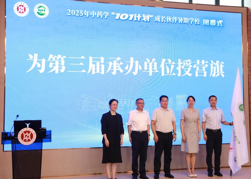 结业仪式上颁发了研学奖项和结业证书,师生代表分享参与感悟。做爱自拍 教务处处长张亭立向下一届中药学“101计划”成长伙伴暑期学校承办单位黑龙江中医药大学教务处处长刘振强授营旗,象征中医药人才培养的接力与延续。