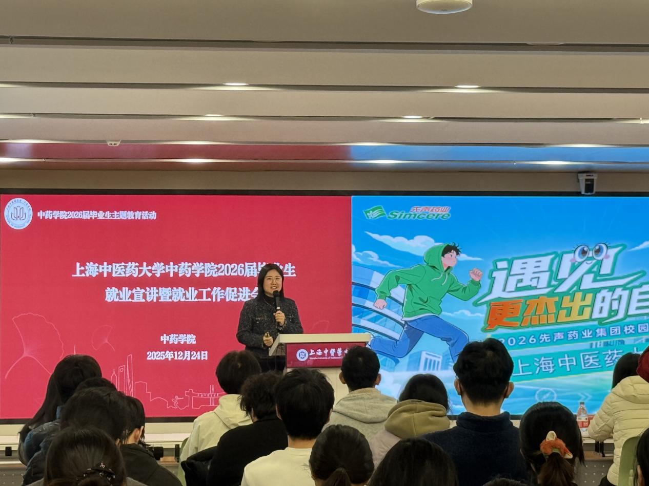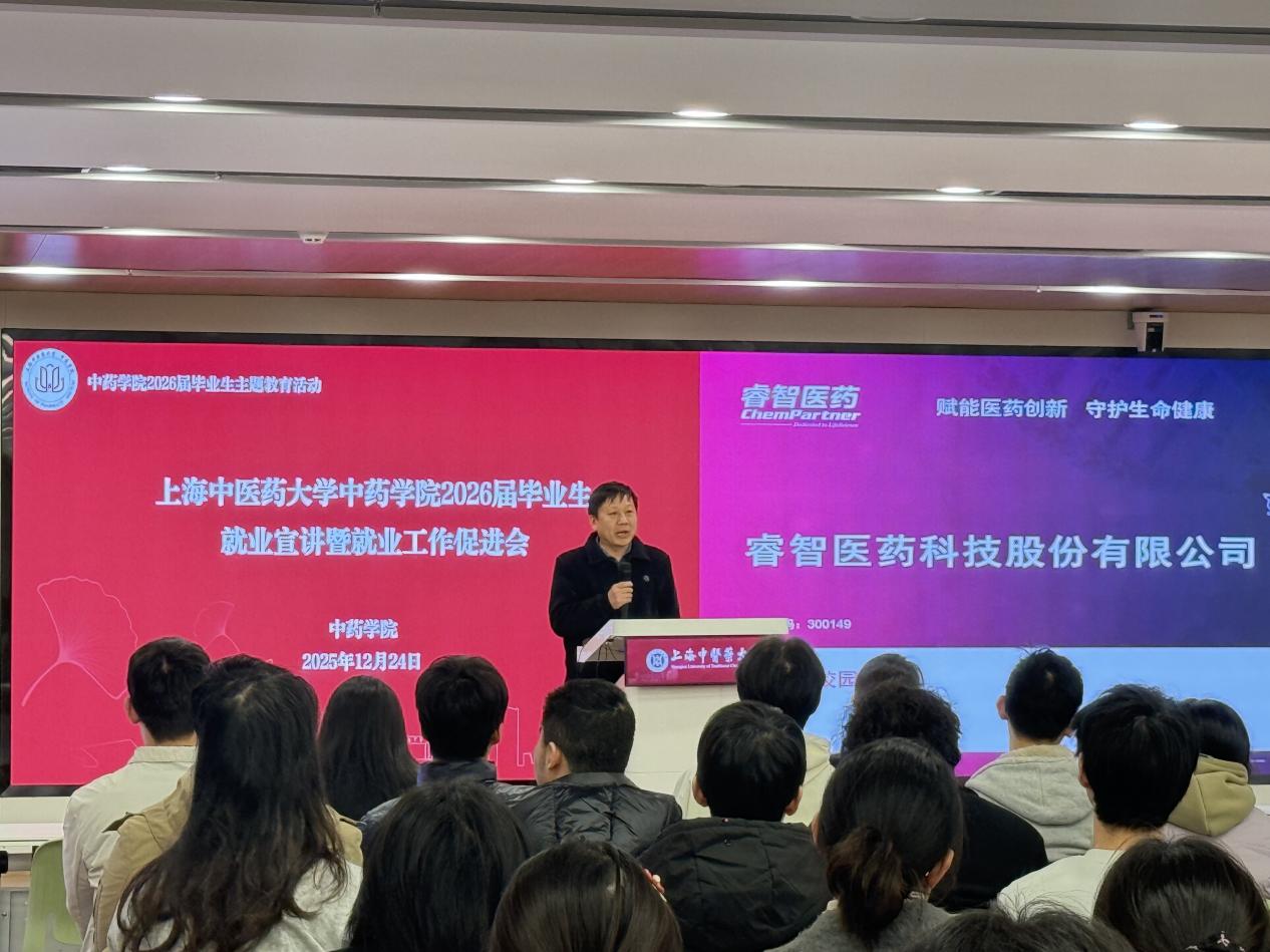 四家企业依次进行招聘宣讲。上海睿智医药研究集团有限公司作为具备“靶点至IND”全流程一站式服务能力的知名CRO企业,重点介绍了其在创新药物研发领域的深厚技术积淀、AI赋能研发的创新举措,以及面向毕业生的研发、技术支持等岗位需求。江苏先声药业有限公司作为国内创新型医药企业的代表,分享了公司在药物研发、生产销售等领域的核心优势与发展愿景,详细解读了校招岗位的任职要求、薪酬福利及晋升通道。南京圣和药业股份有限公司企业代表结合公司在中药及化药领域的业务布局,介绍了做爱自拍、团队建设理念,以及针对毕业生的多元化岗位设置与个性化培养方案。苏州亿腾药品销售有限公司则聚焦药品流通领域的发展机遇,讲解了销售管理、市场推广等岗位的职业价值与成长路径,为擅长沟通、关注市场的学子提供了清晰的求职方向。