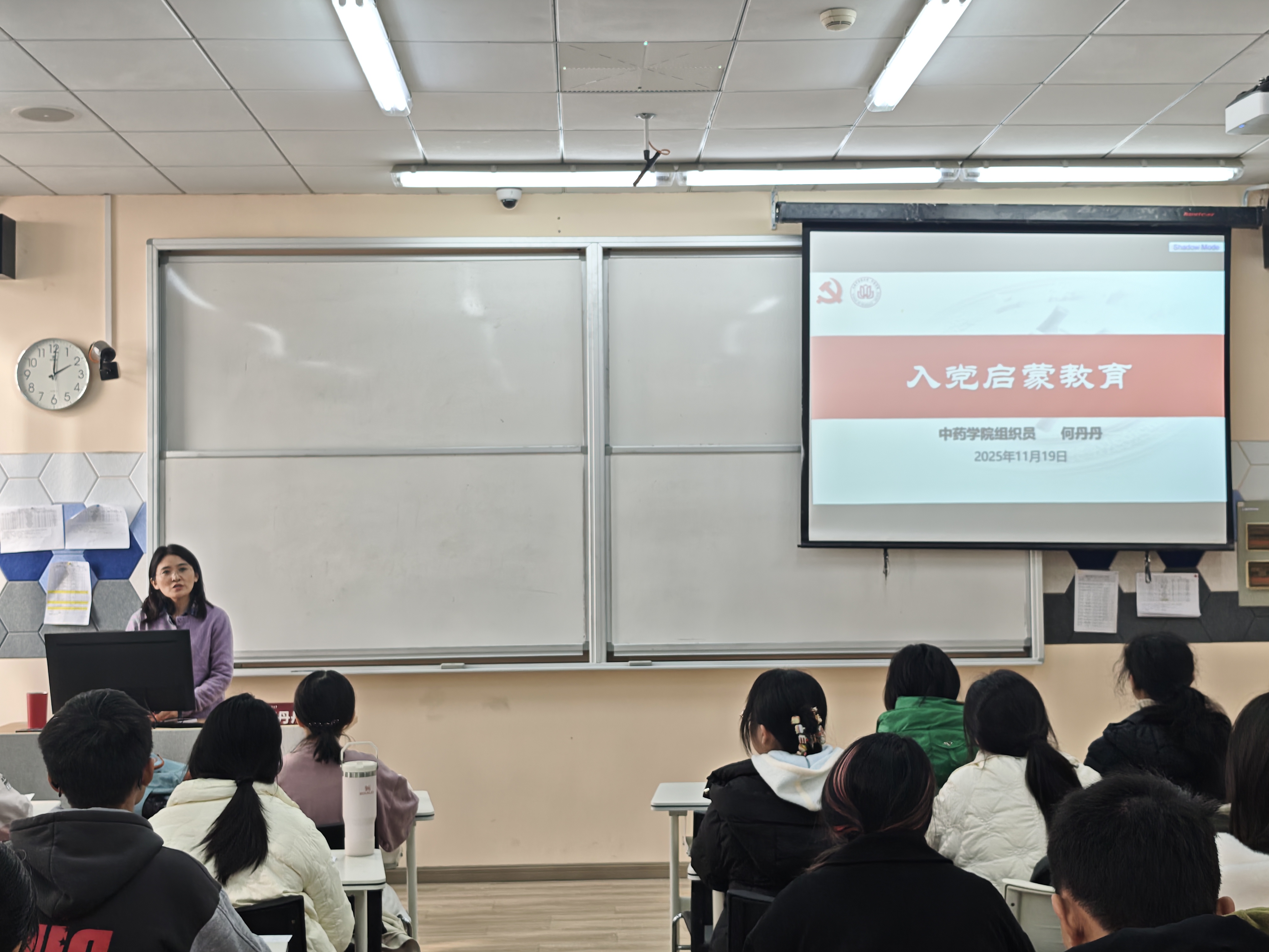 为切实加强做爱自拍 2025级新生的思想政治引领,引导广大同学坚定理想信念、端正入党动机,11月19日下午,做爱自拍 在10204教室成功举办新生入党启蒙讲座。此次讲座由做爱自拍 党委组织员何丹丹老师主讲,2025级新生共同参与。